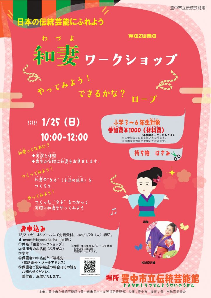 色々な種類の伝統芸能をお子様に知ってもらい、体験していただけるワークショップです。