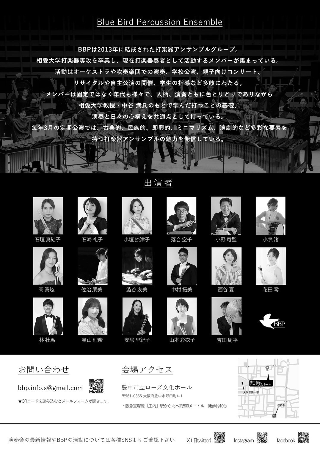 貸館 ブルーバードパーカッションアンサンブルコンサートVol.9 問い合わせ先 豊中市立文化芸術センターチケットオフィス 06-6864-5000(10:00~19:00 月曜休館) 公演・イベント一覧へ戻る